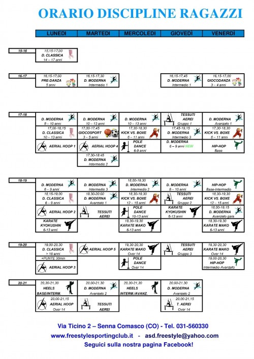 Orario discipline Ragazzi